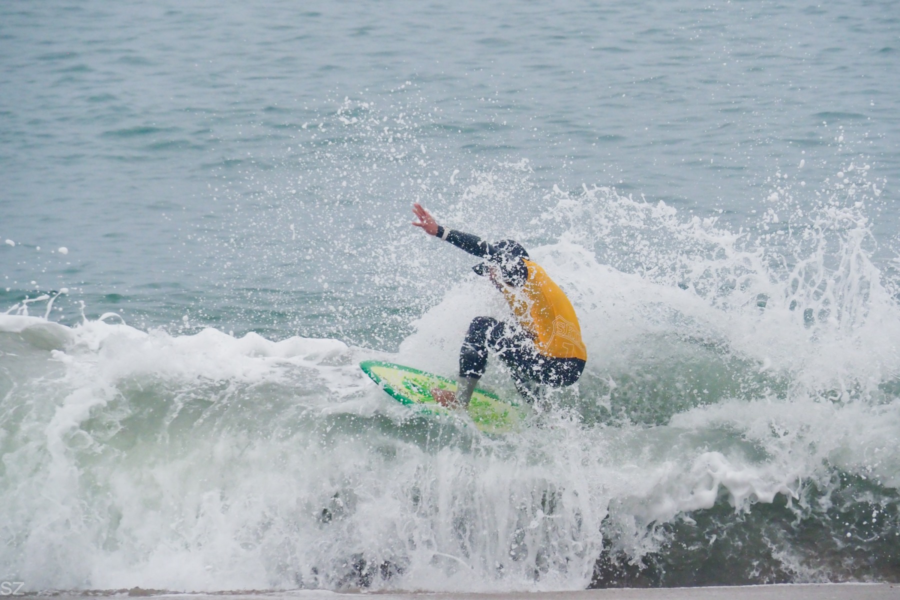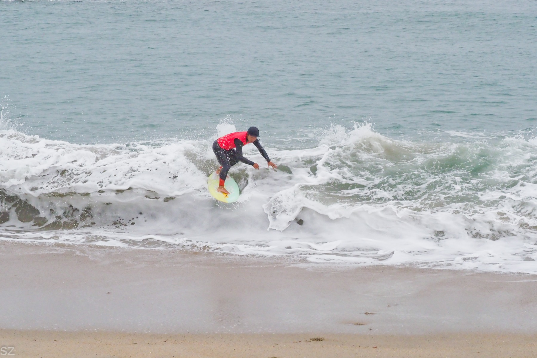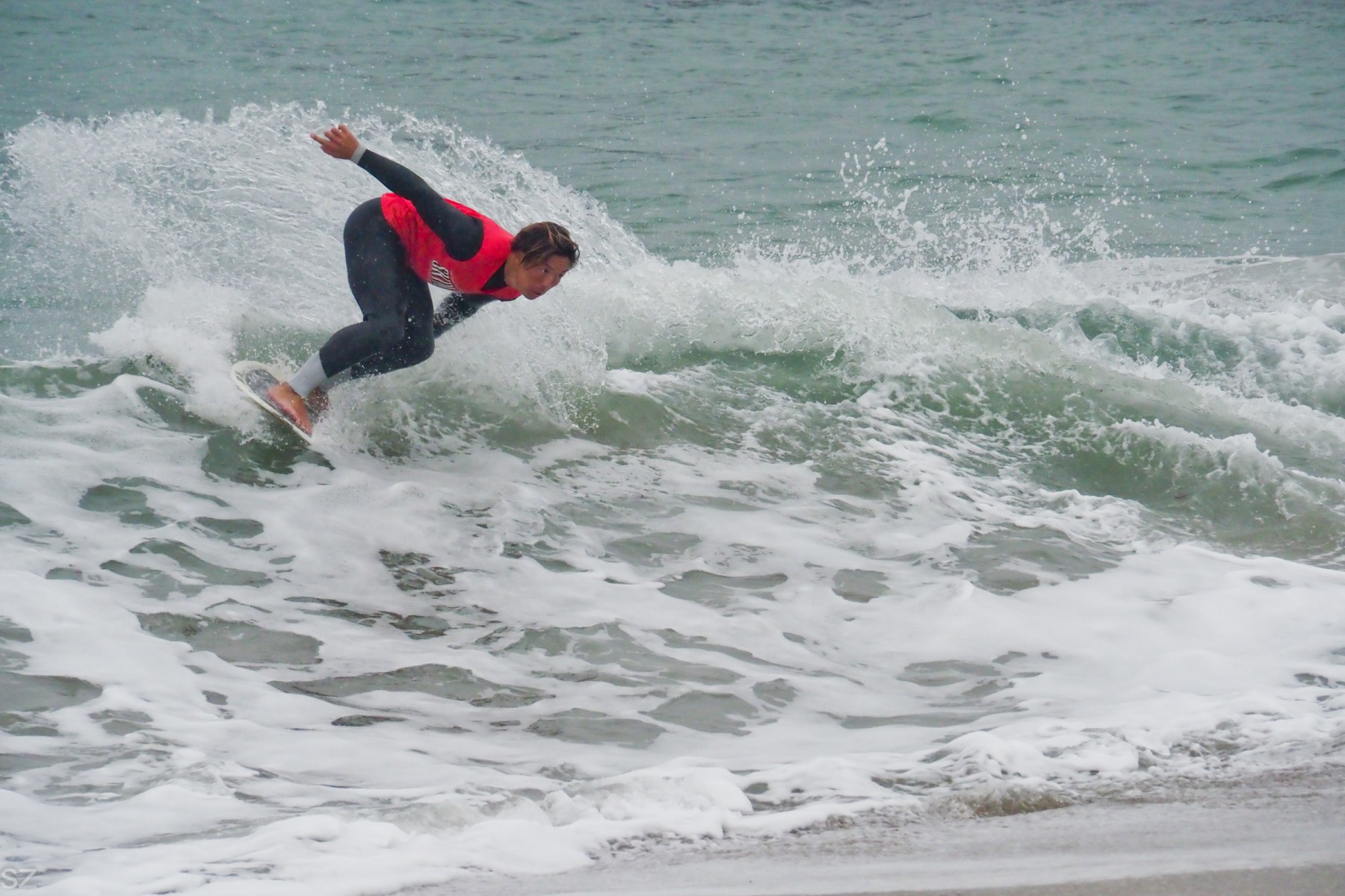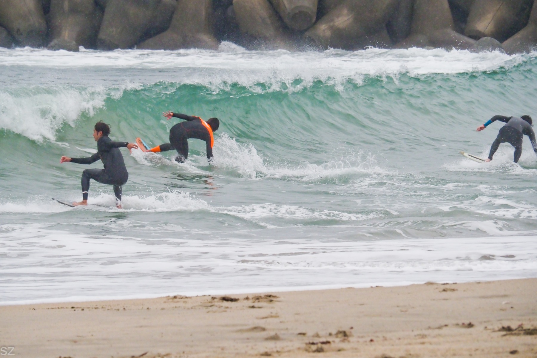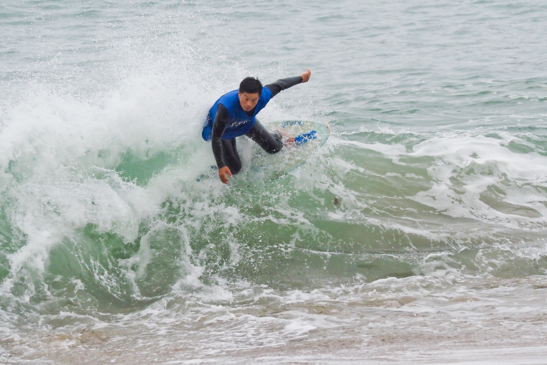 断続的な小雨が続く中、恒例の芋煮で体を温めつつ大会を観戦。波は大きく風は弱いオフショア、波風の条件は悪くないが傾斜がやや緩く遠くで割れる波が多いのでなかなかハードでしたが見応えのあるライディングが多く撮影出来ました。