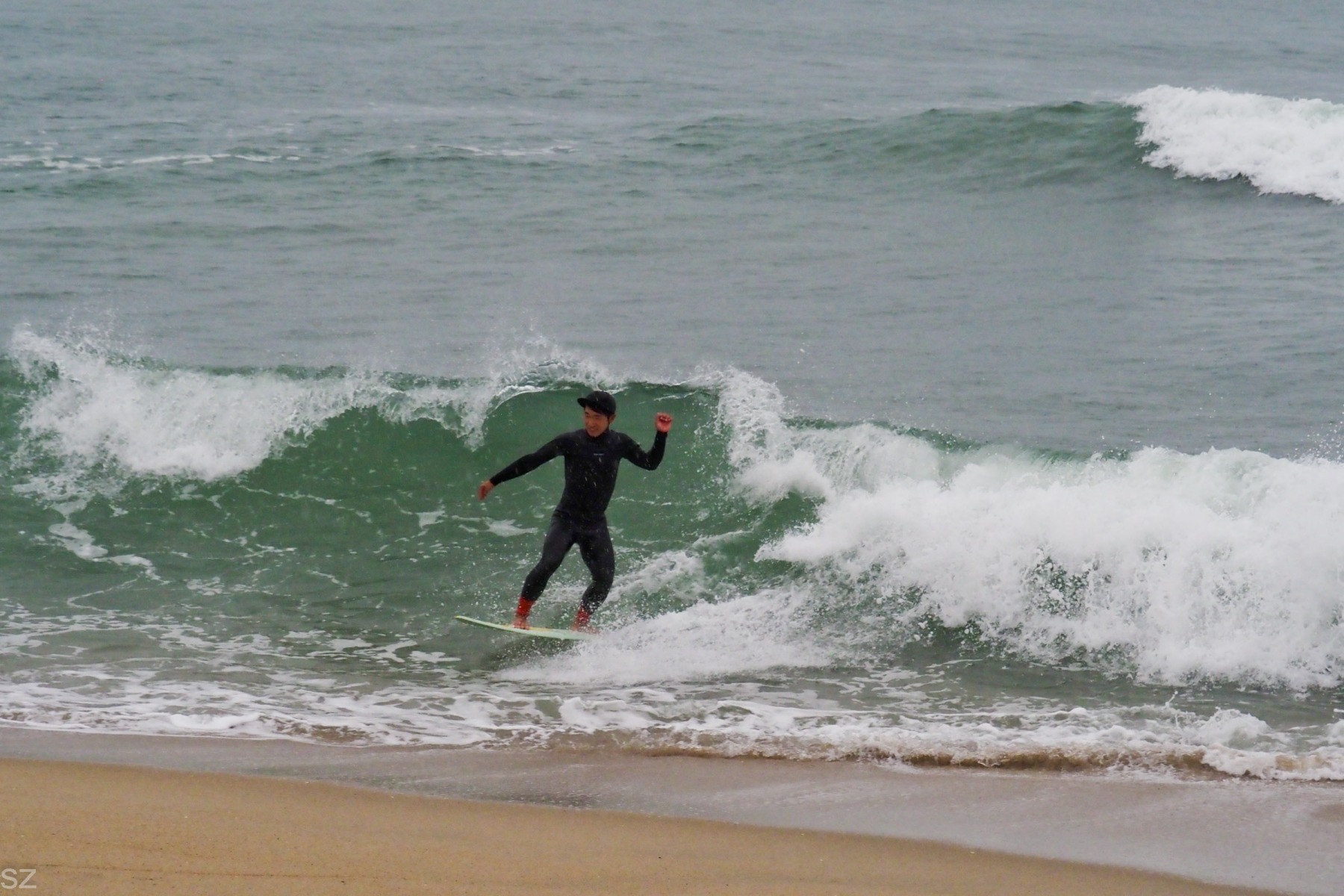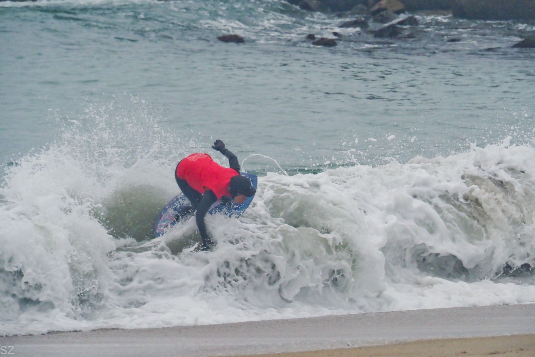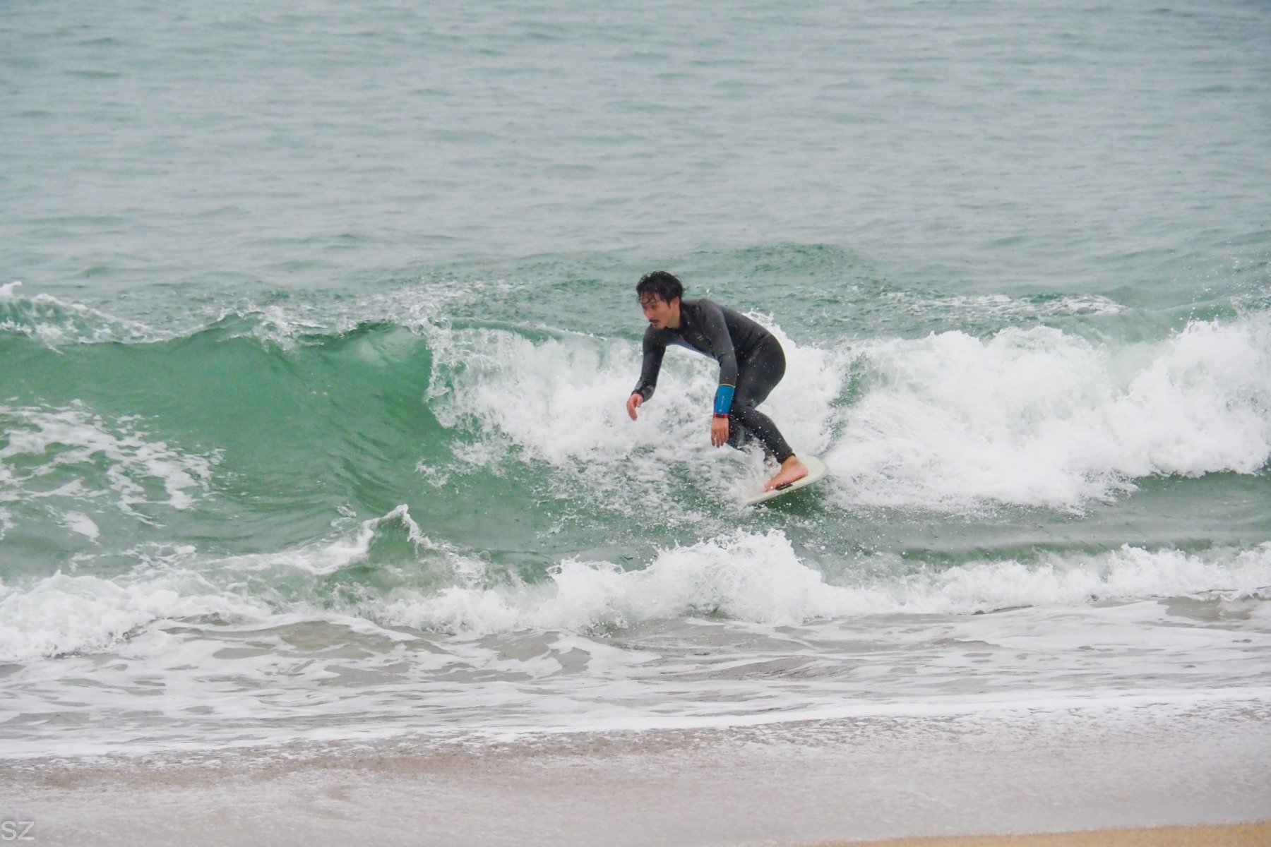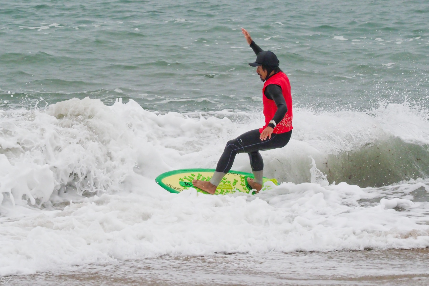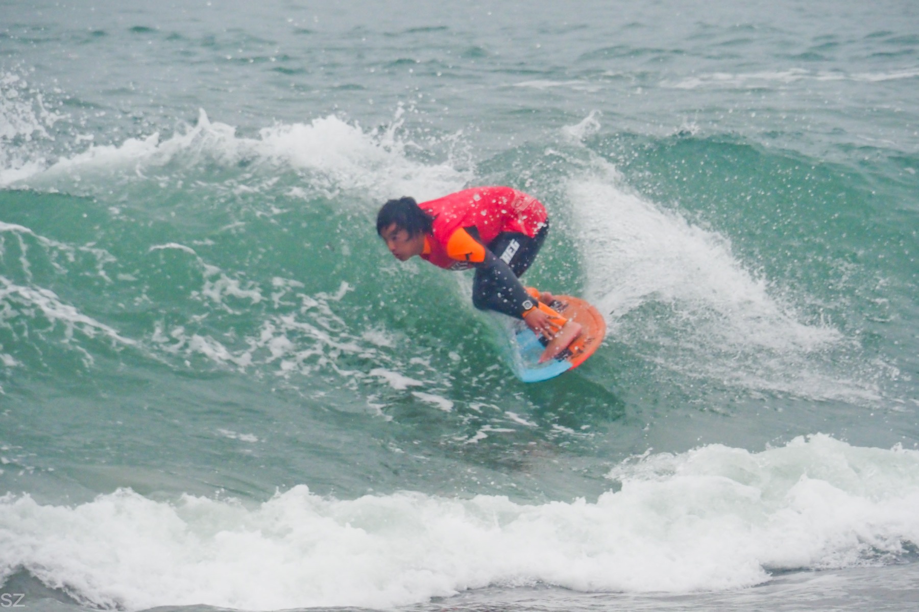 断続的な小雨が続く中、恒例の芋煮で体を温めつつ大会を観戦。波は大きく風は弱いオフショア、波風の条件は悪くないが傾斜がやや緩く遠くで割れる波が多いのでなかなかハードでしたが見応えのあるライディングが多く撮影出来ました。