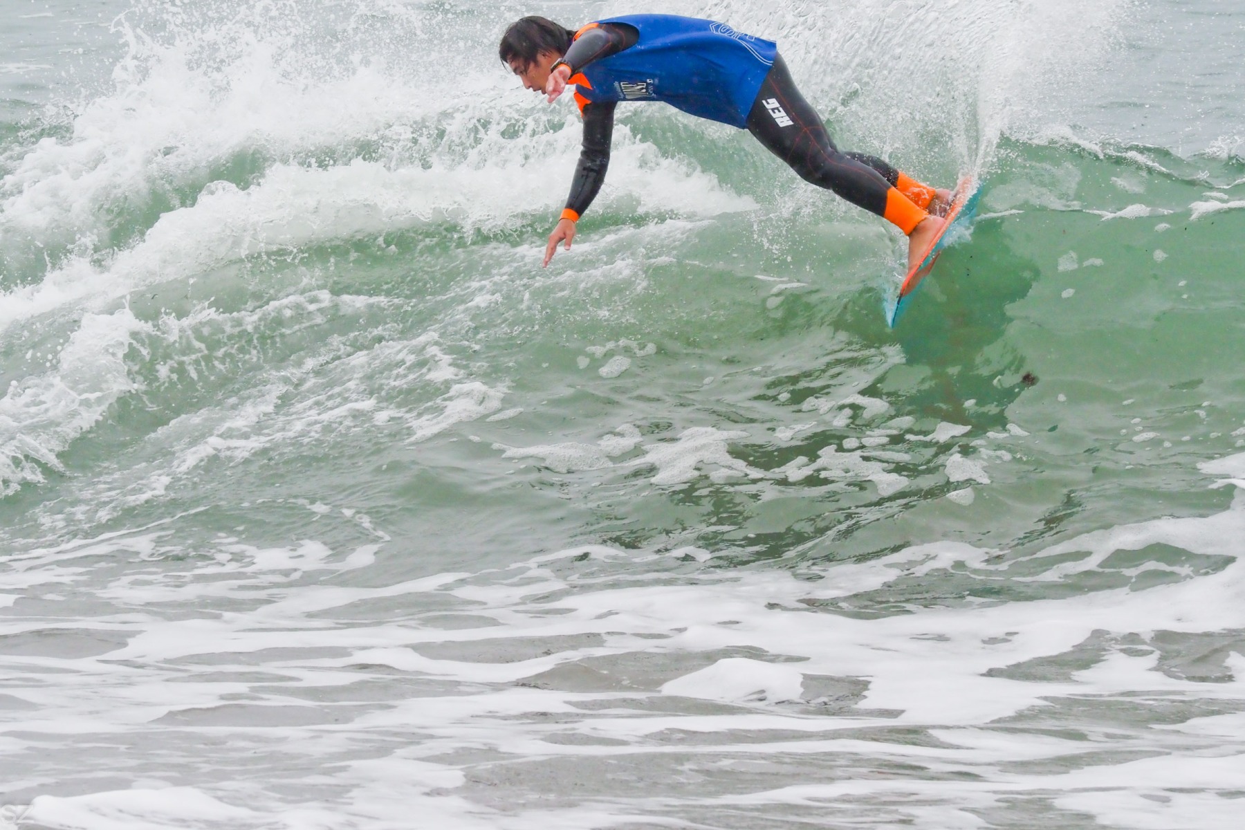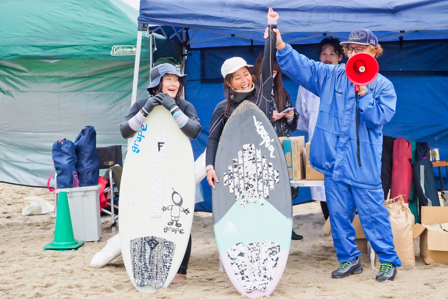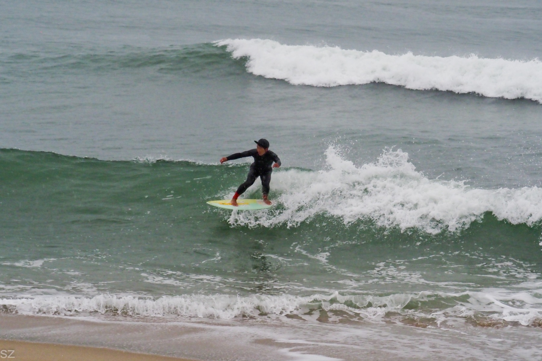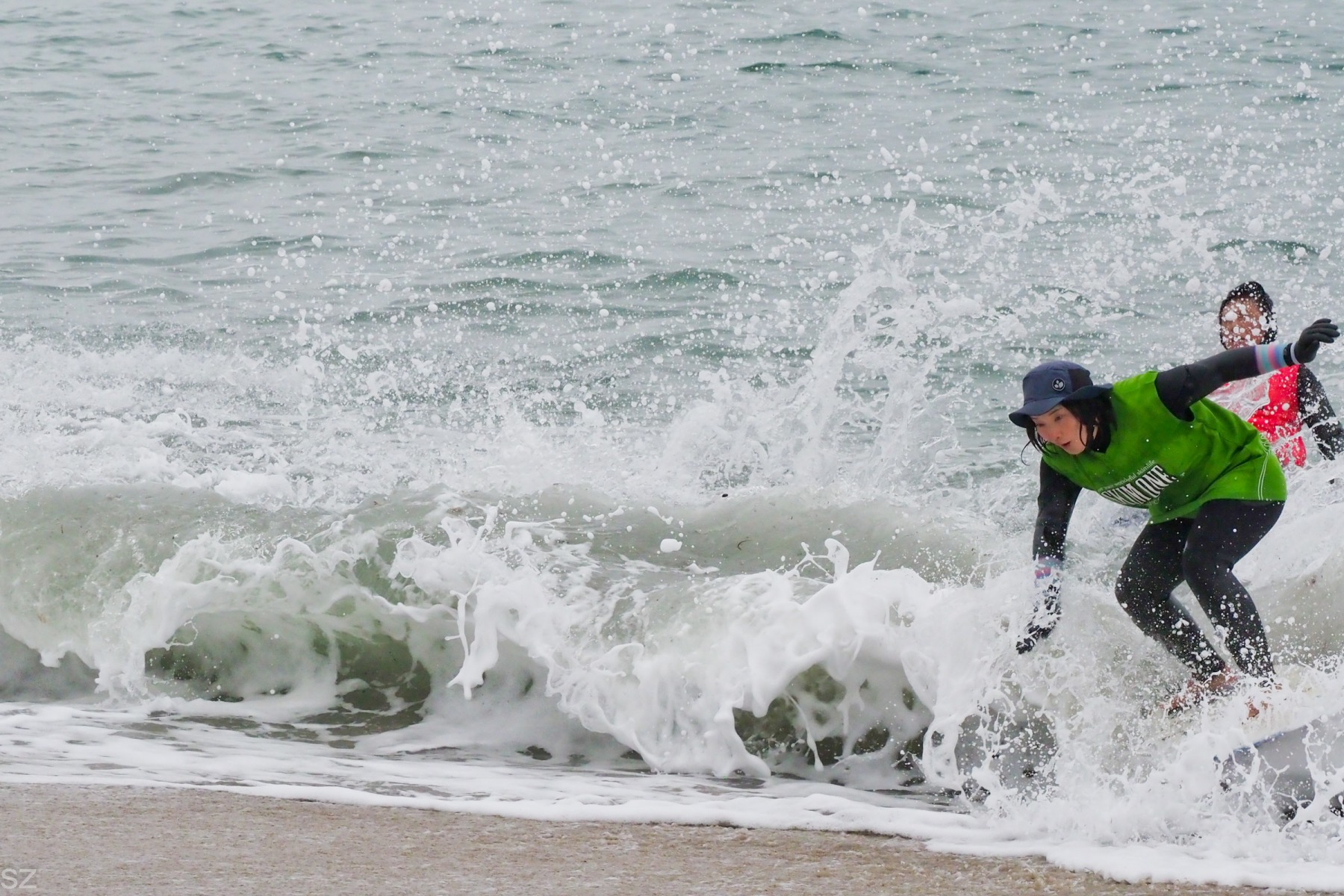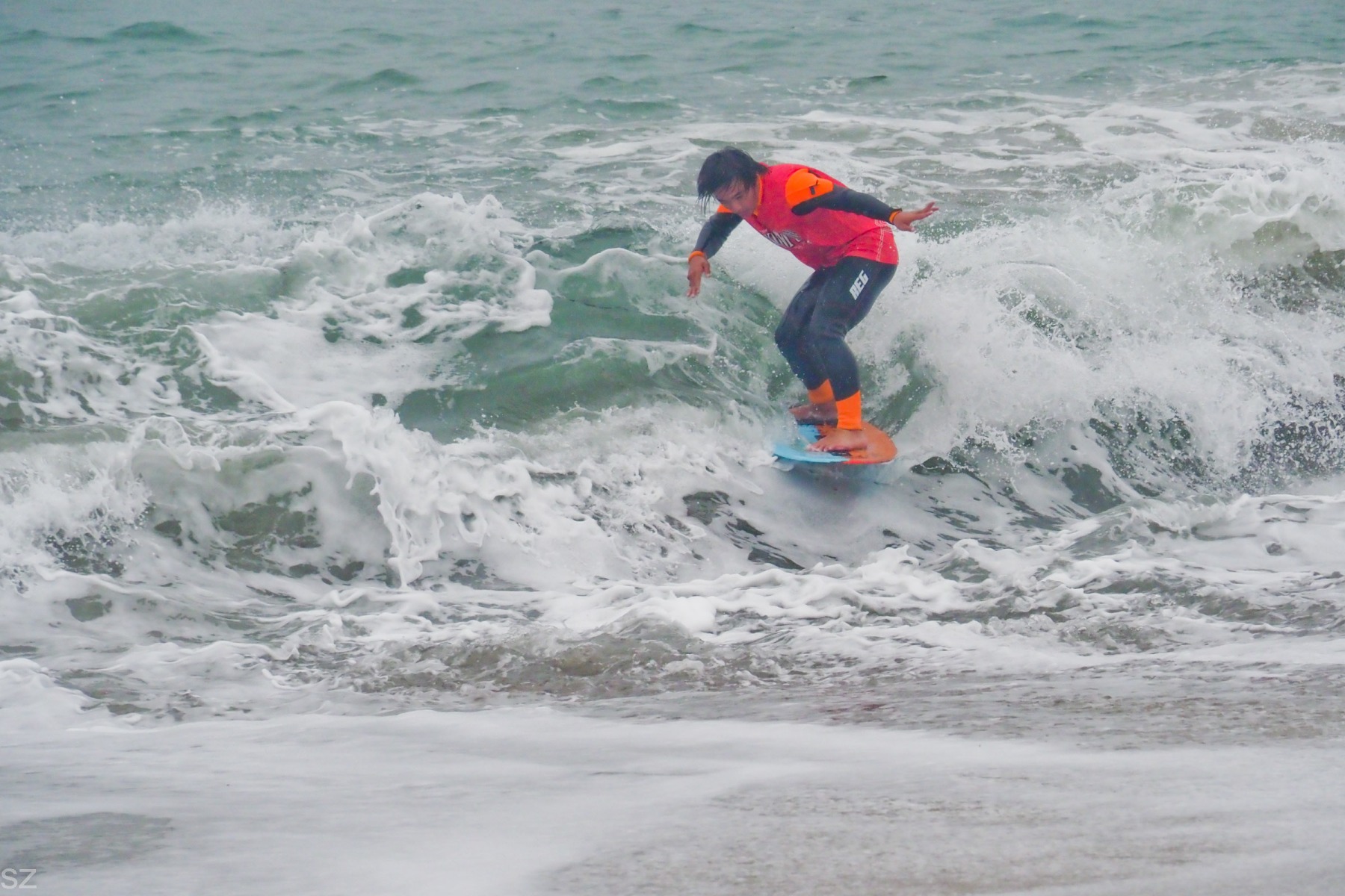 断続的な小雨が続く中、恒例の芋煮で体を温めつつ大会を観戦。波は大きく風は弱いオフショア、波風の条件は悪くないが傾斜がやや緩く遠くで割れる波が多いのでなかなかハードでしたが見応えのあるライディングが多く撮影出来ました。