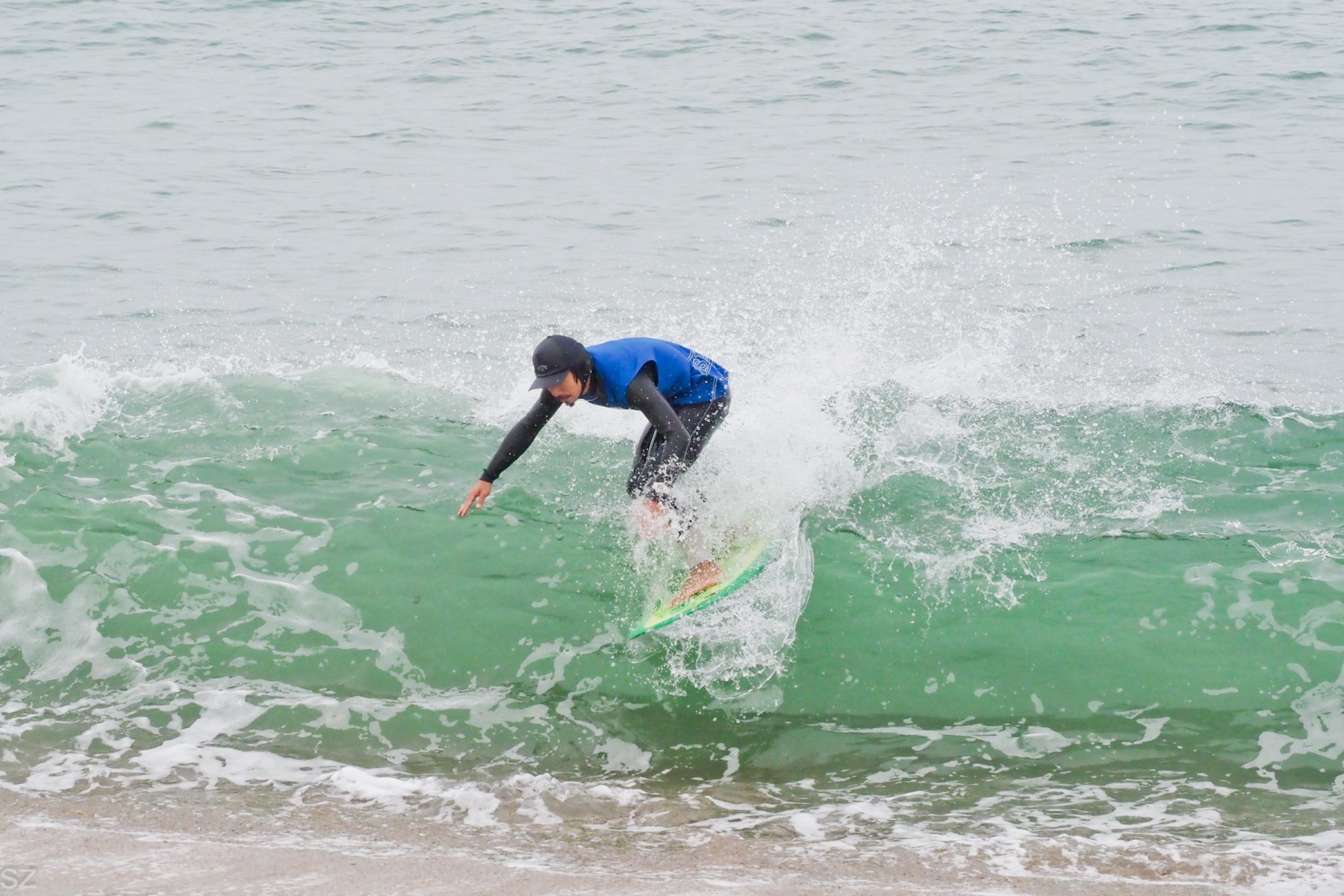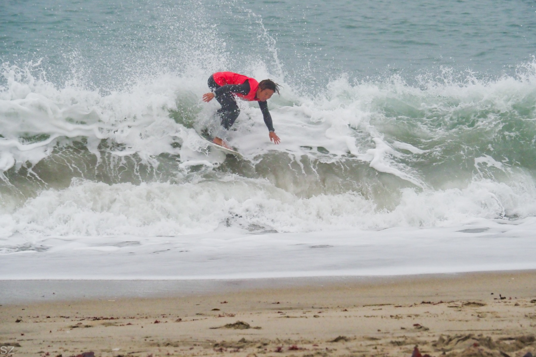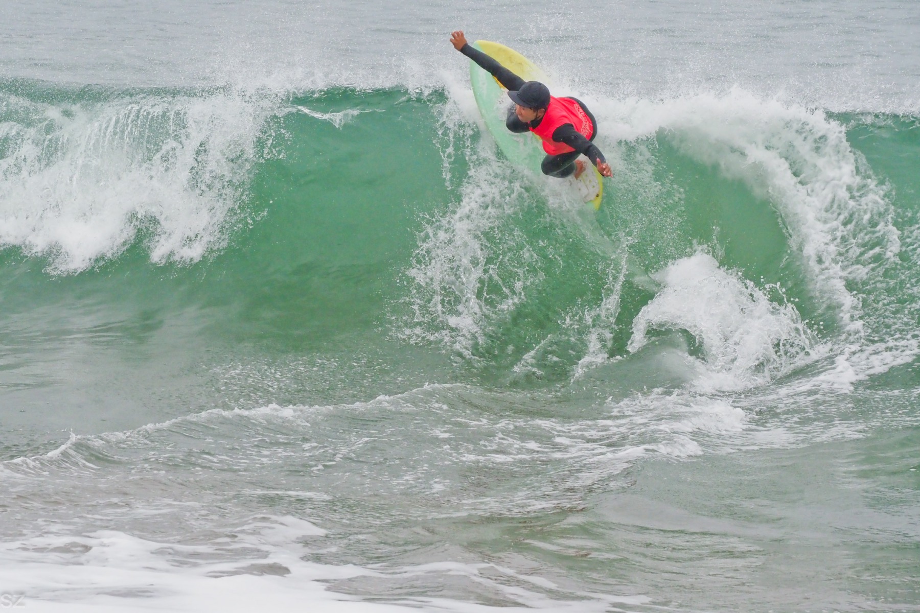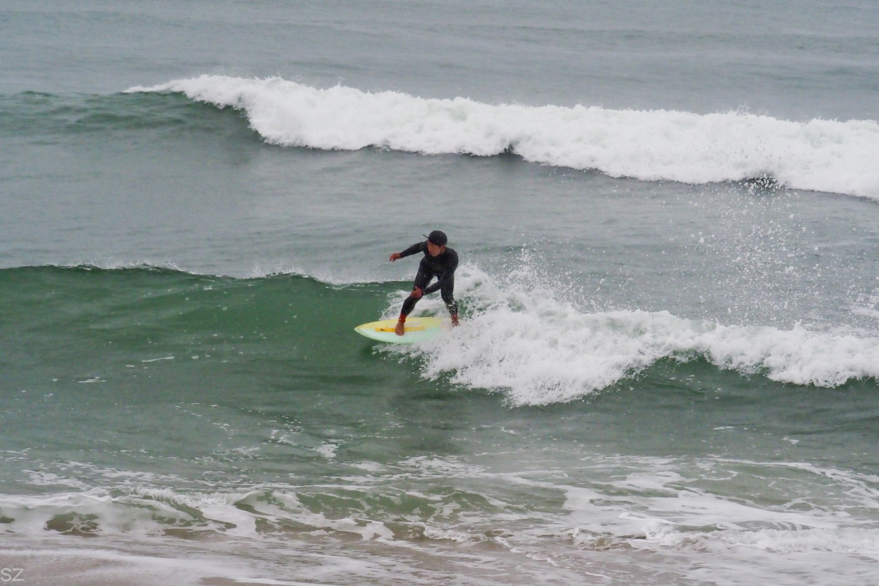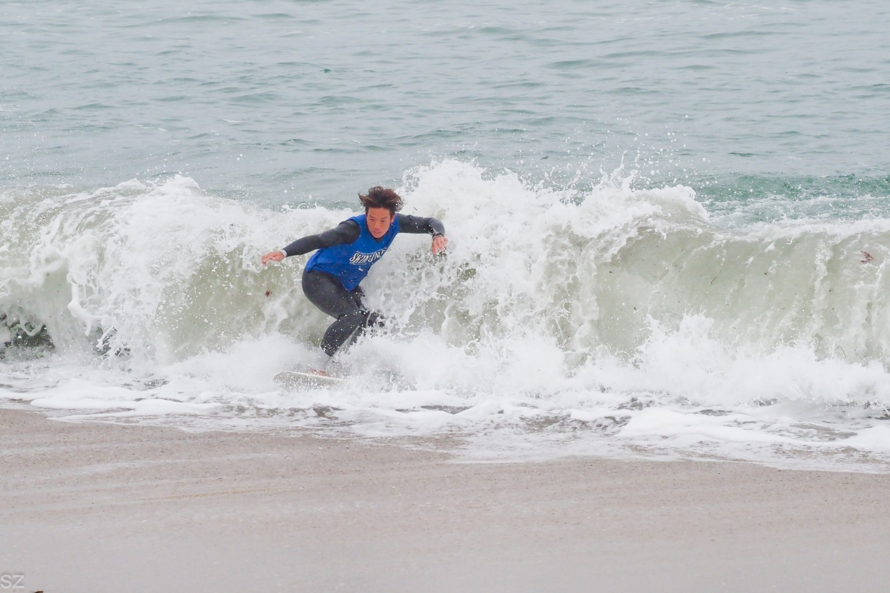 断続的な小雨が続く中、恒例の芋煮で体を温めつつ大会を観戦。波は大きく風は弱いオフショア、波風の条件は悪くないが傾斜がやや緩く遠くで割れる波が多いのでなかなかハードでしたが見応えのあるライディングが多く撮影出来ました。