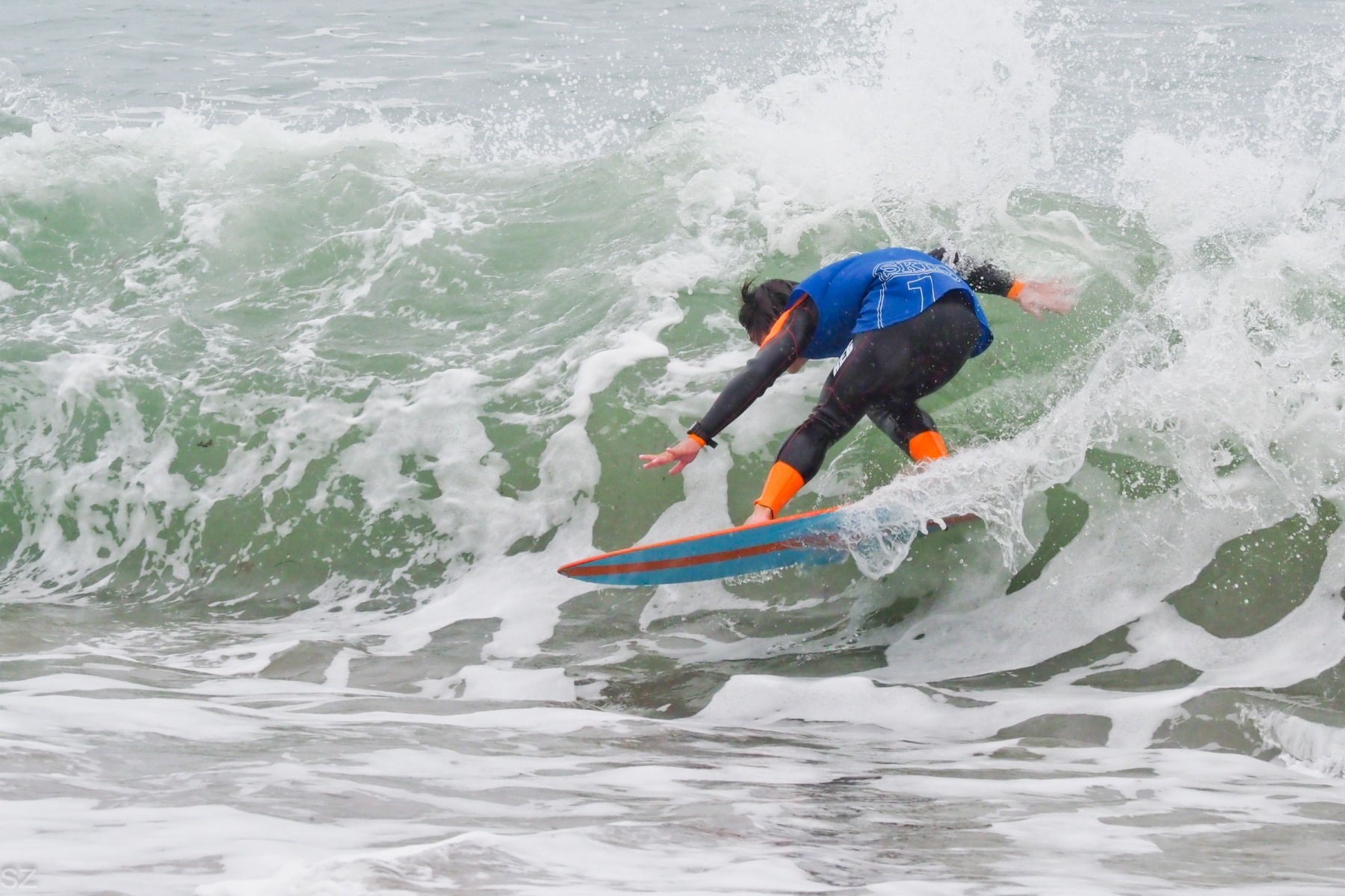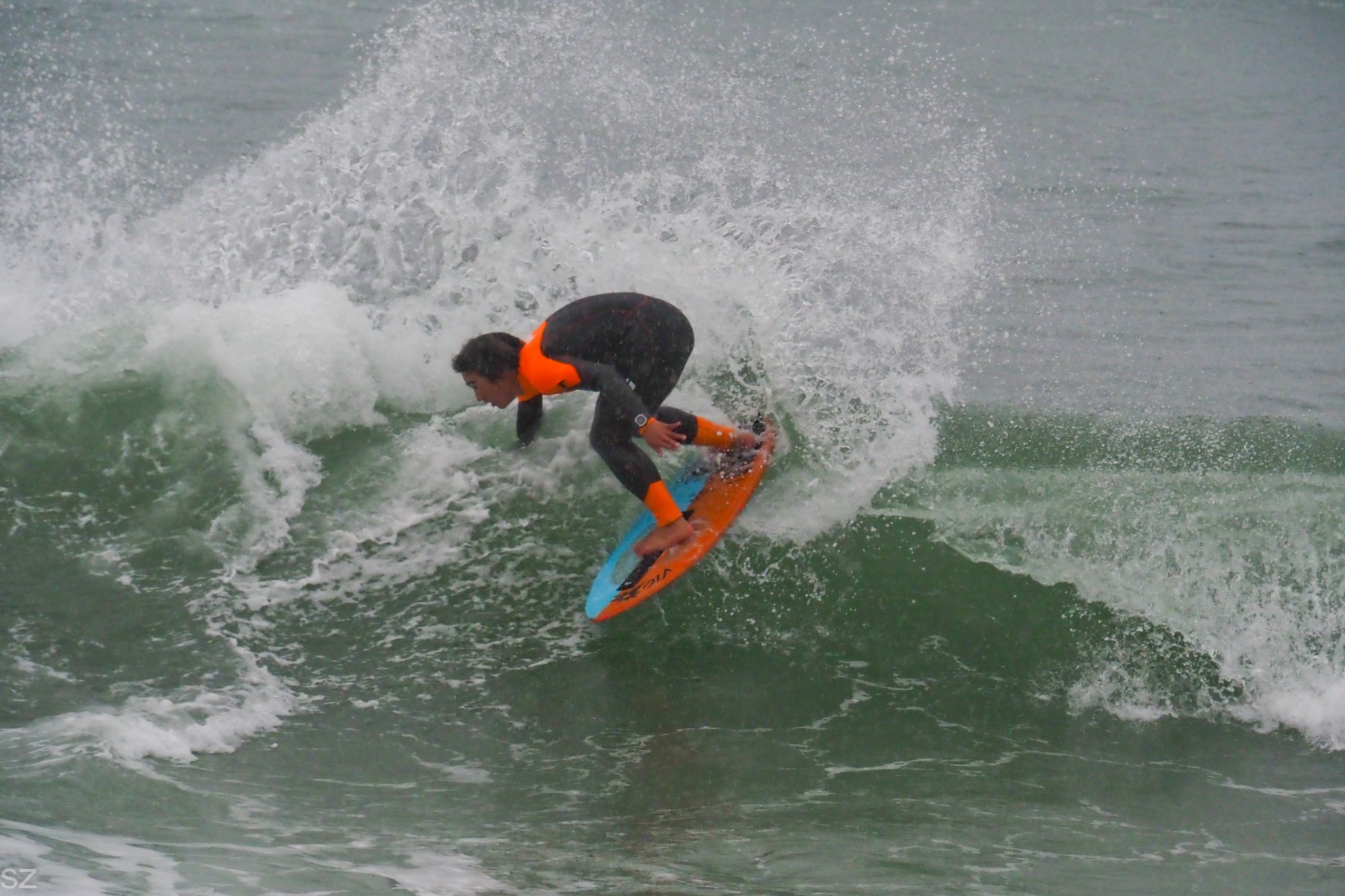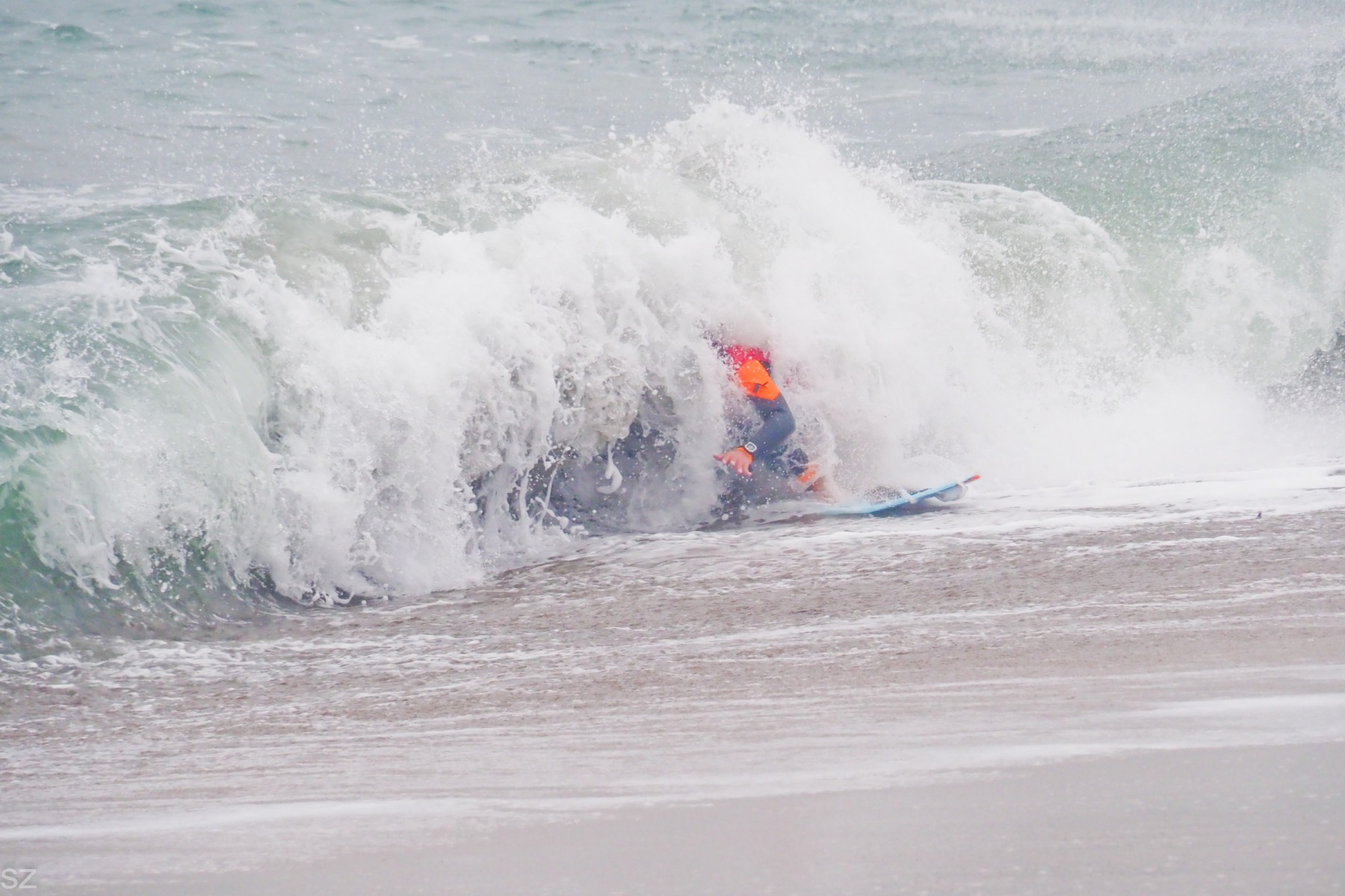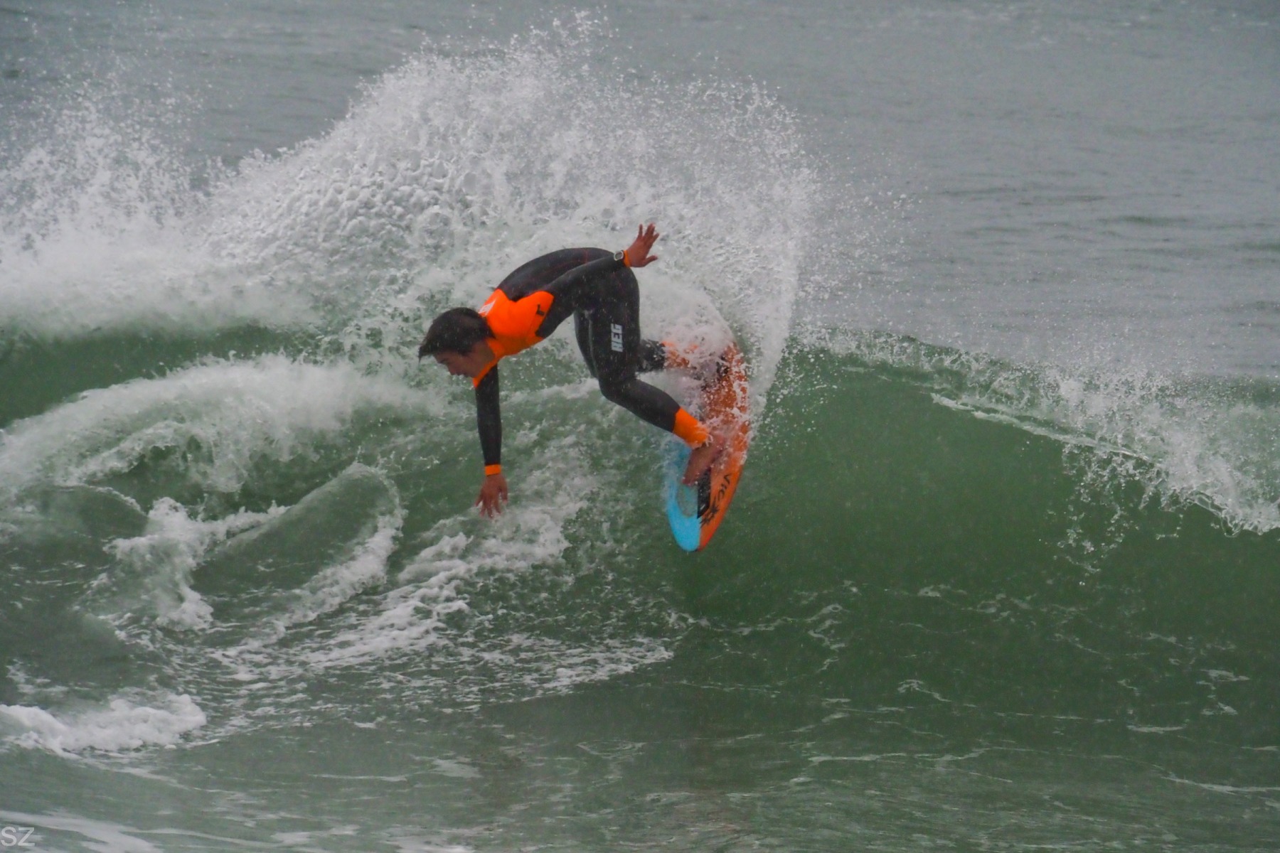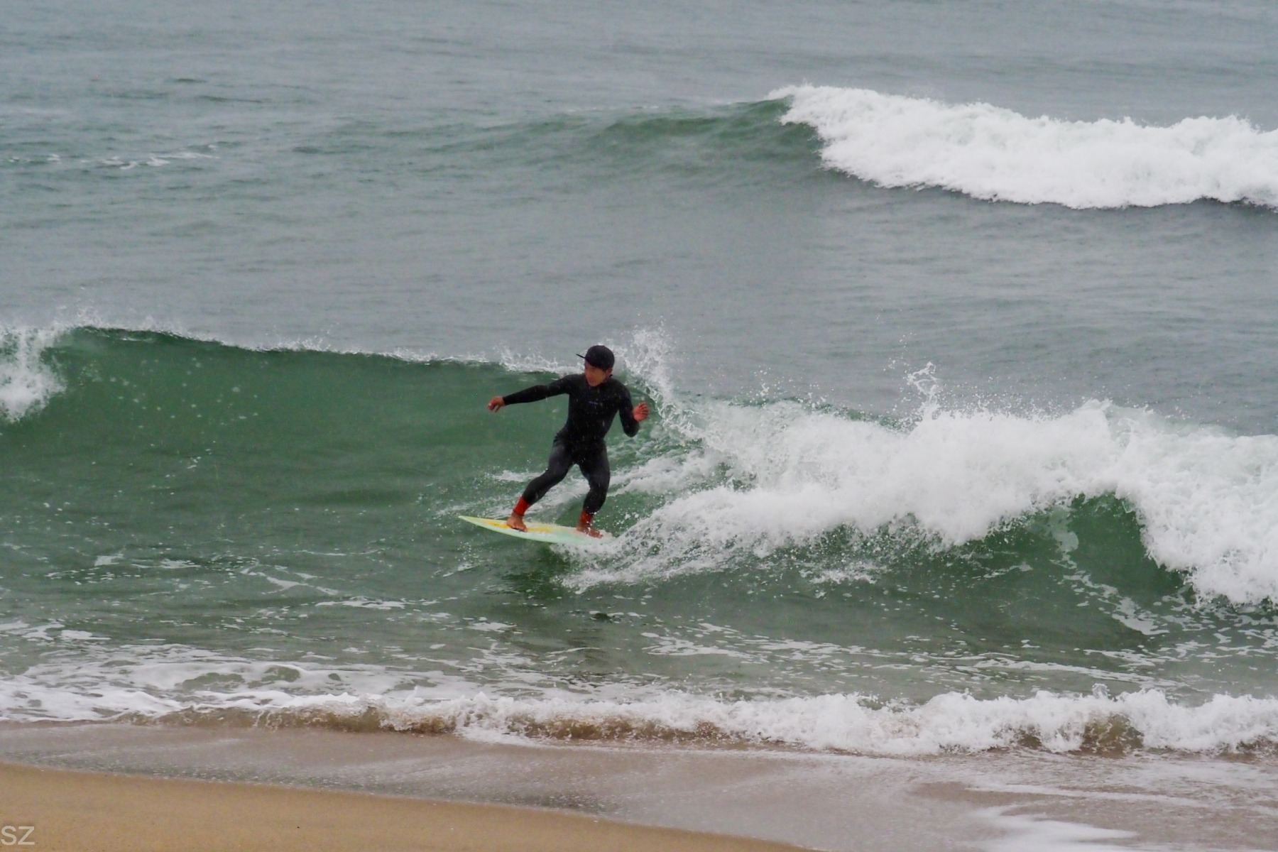 断続的な小雨が続く中、恒例の芋煮で体を温めつつ大会を観戦。波は大きく風は弱いオフショア、波風の条件は悪くないが傾斜がやや緩く遠くで割れる波が多いのでなかなかハードでしたが見応えのあるライディングが多く撮影出来ました。