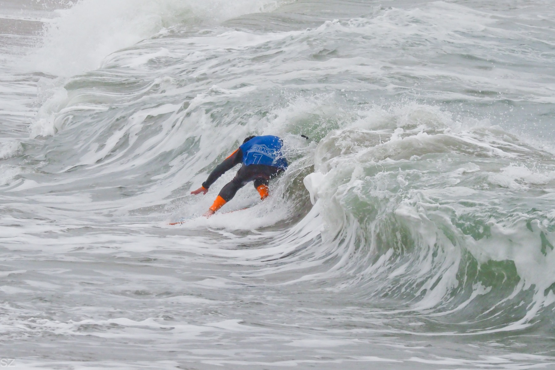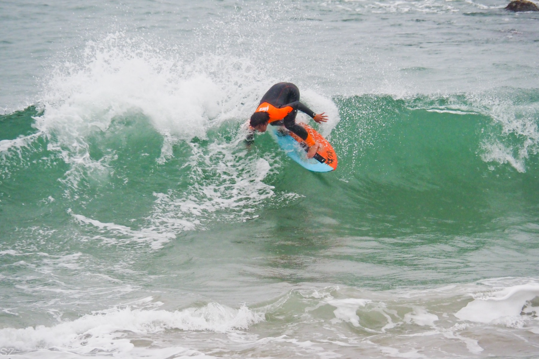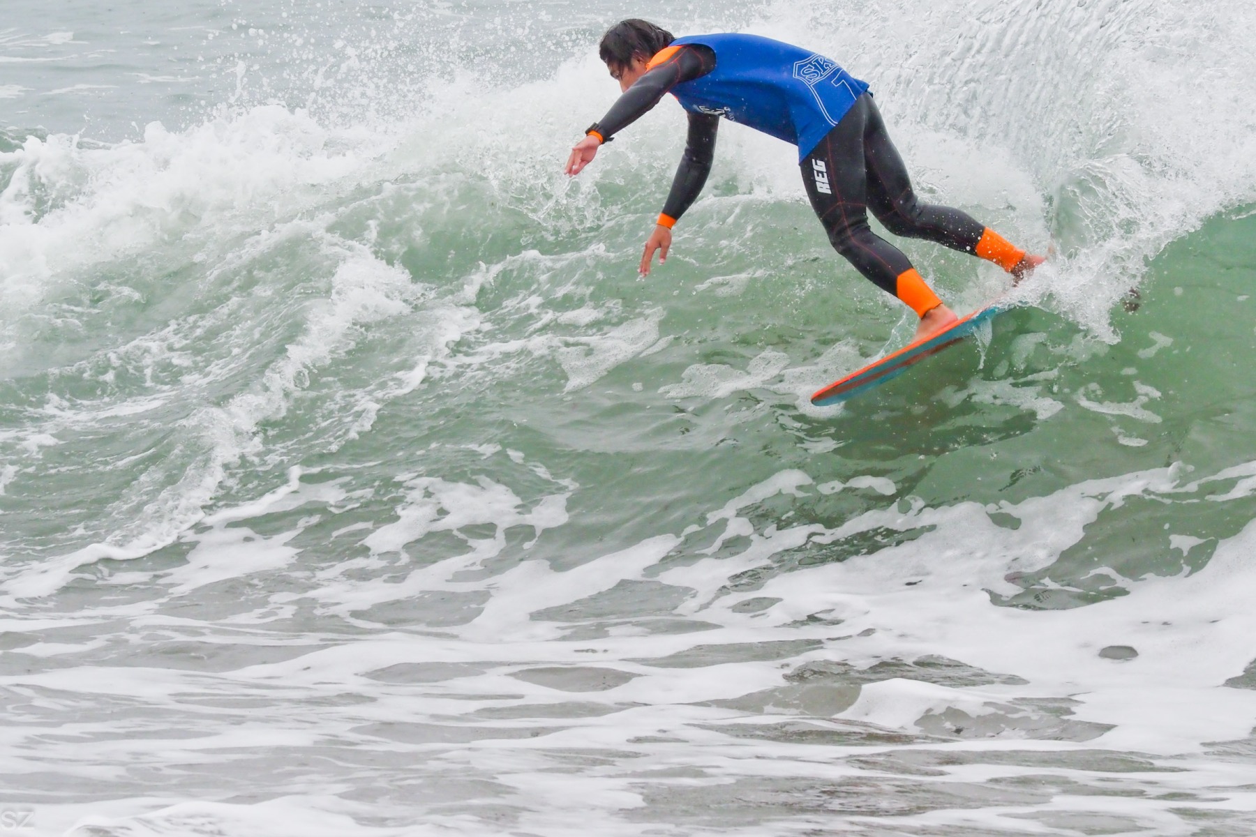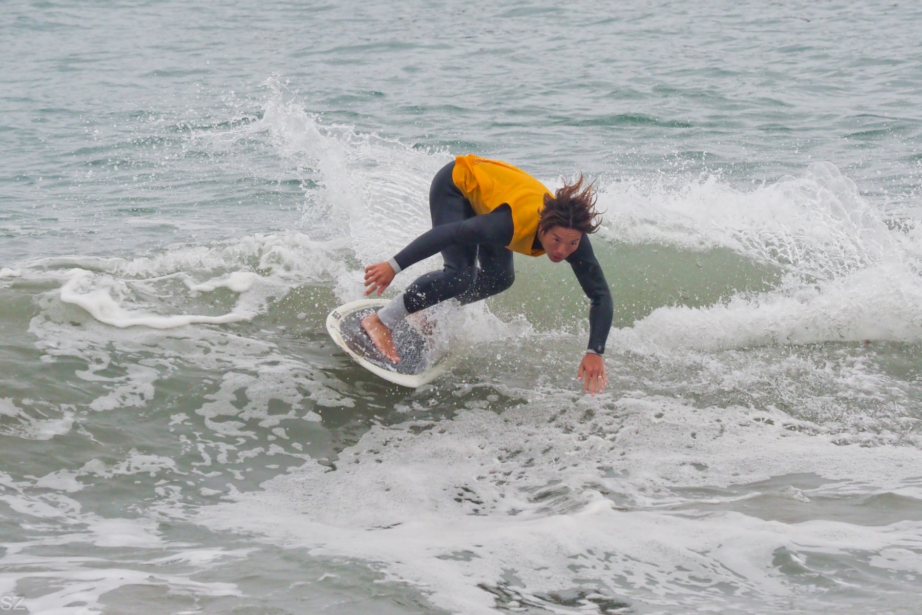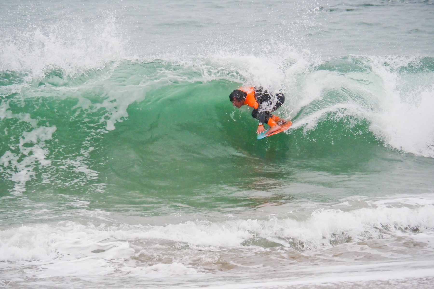 断続的な小雨が続く中、恒例の芋煮で体を温めつつ大会を観戦。波は大きく風は弱いオフショア、波風の条件は悪くないが傾斜がやや緩く遠くで割れる波が多いのでなかなかハードでしたが見応えのあるライディングが多く撮影出来ました。